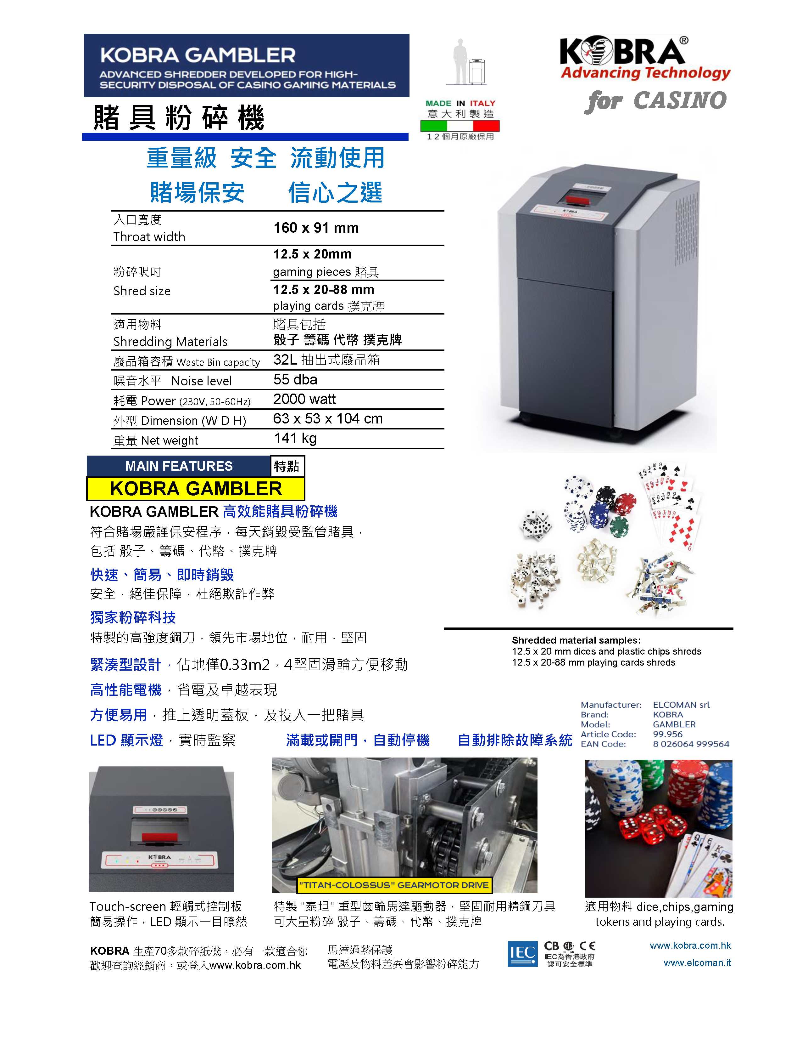 符合賭場嚴謹保安程序,每天銷毀受監管賭具,