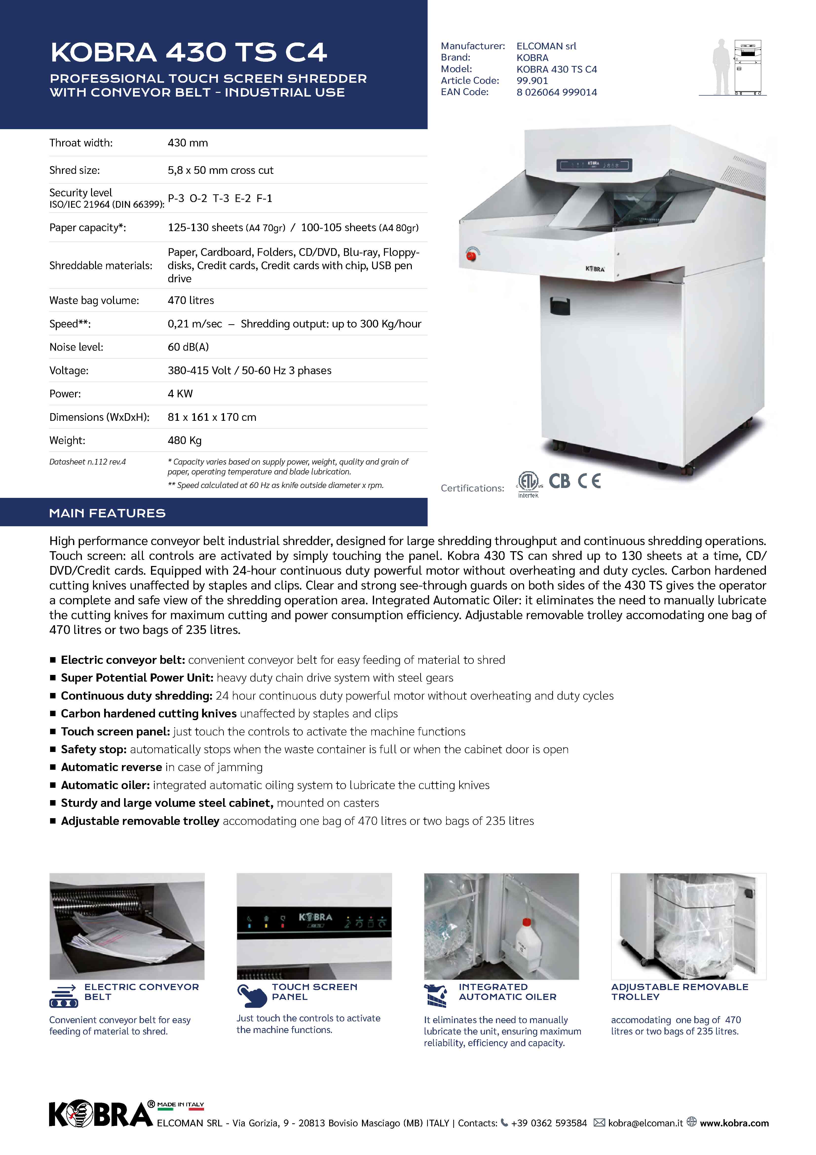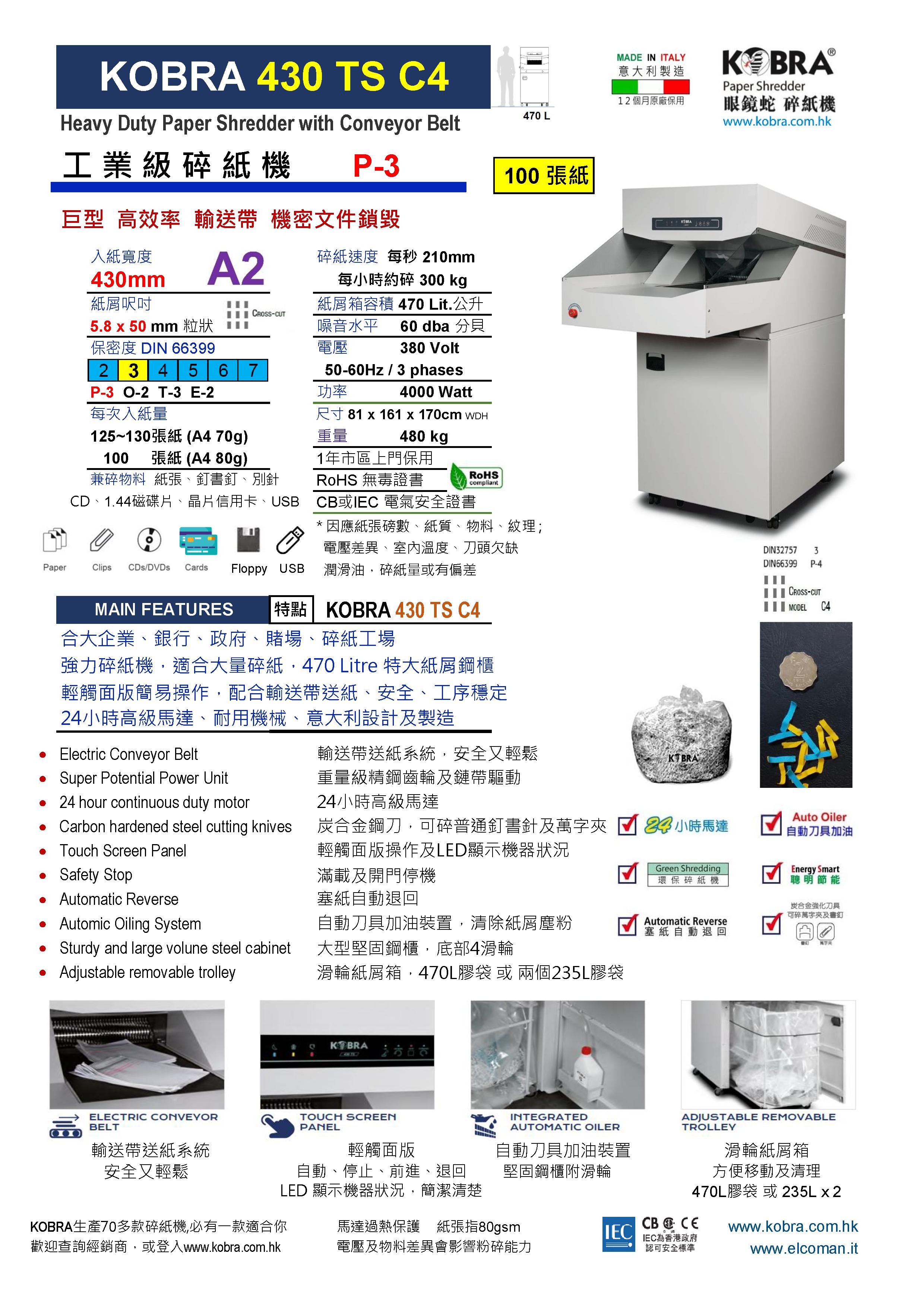 KOBRA 430 TS C4 (P-4 470L 巨型碎紙機)
