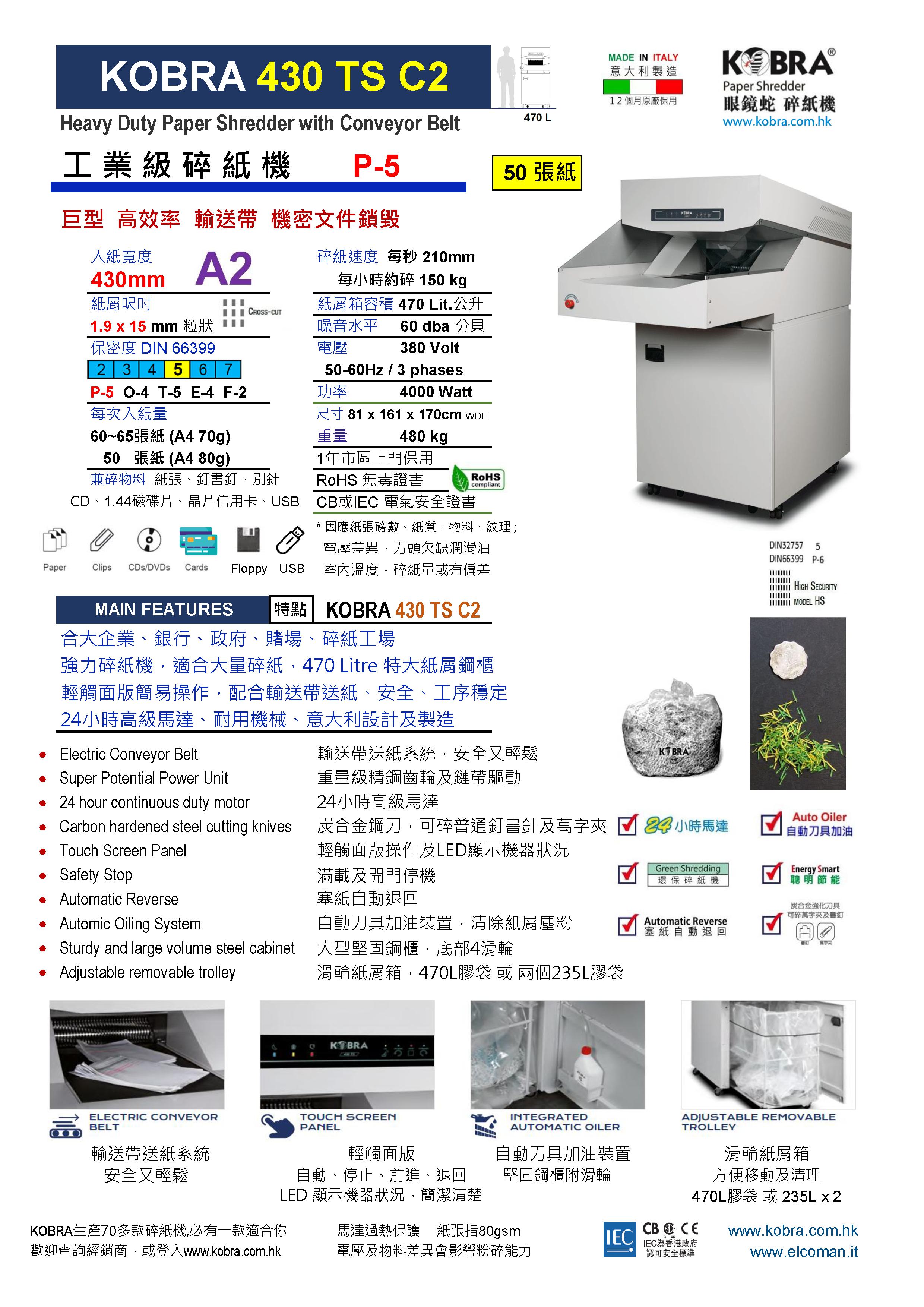 KOBRA 430 TS C2 (P-5 470L 巨型碎紙機)