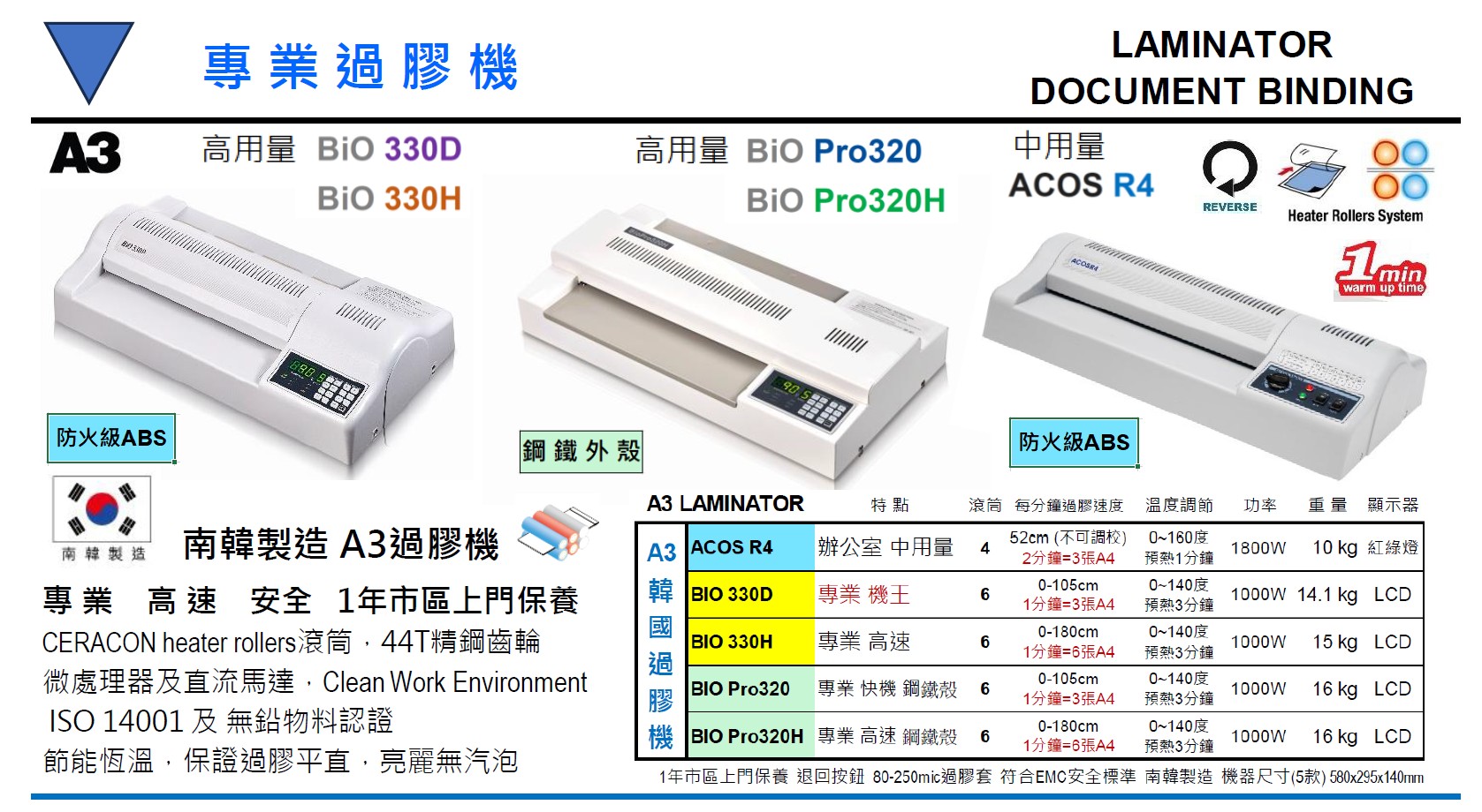 BIO 330H 過膠機 (A3 南韓 高速高用量)1年上門保養